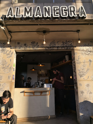 Fui por la noche el día de hoy de primera ocasión a Alma Negra con muchas ganas de probar su café, pero la experiencia fue decepcionante. Desde el inicio, la atención fue grosera y desinteresada. Al preguntar por el menú, la chica que atendía simplemente señaló la pared de manera descortés, en lugar de darme una respuesta amable. El menú era muy reducido y poco claro.