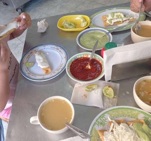 Desde que llegamos la mesera con una actitud prepotente y mala cara, después al recibir los alimentos... Los limones viejos que seguramente sobraron de otra mesa, porque también vimos que para ahorrarse unos pesos reciclan sus salsas (qué asco)!, Sigamos con la aventura culinaria, los tacos dorados o suaves sin carne... Creo que el muchacho se le pasó quitarle más carne 🤣 y pues el consomé, muy x Si tendrá muchos años, pero no...