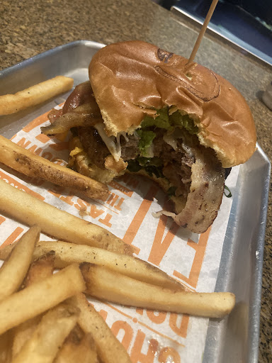 Después pedimos los alimentos. Todo está exageradamente salado. Comías una papa a la francesa y le caía demasiada sal. Aparte todo estaba frío, en la foto de la hamburguesa se ve que hasta el queso tiene una capa tipo nata 🤢 Por lo mismo del ruido los meseros no se escuchaban cuando te decían algo.