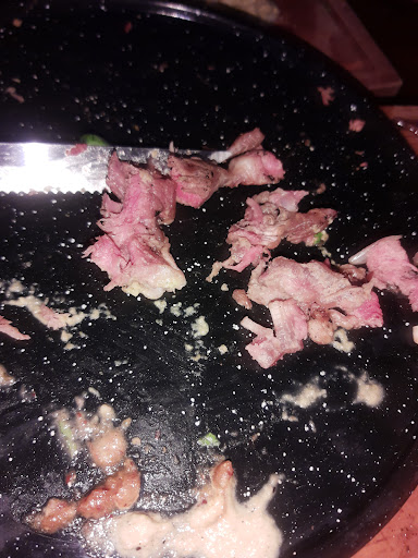 Pedimos un rib eye qué venía con ensalada y jugo de carne, muy ricos. El rib eye lo pedimos termino medio, pero como mi mamá le cuesta morder, tuvimos que pedir que lo cocinaran más y la señorita muy amable en volver a cocinarlo. Aunque aun así la carne todavía tenía partes duras de pellejo, pero en general bien. El sabor bastante rico.