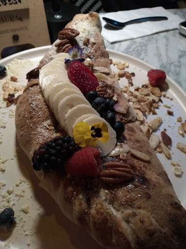 Los postres nos decepcionaron. Pedimos la crème brûlée y nos la sirvieron sin azúcar quemado; por algo es "brûlée" (quemada). Al cuestionar a la mesera nos dijo que en cocina no encontraron el soplete para quemar el azúcar (what!!??). La textura de la crema era demasiado untuosa y aireada, nada que ver con la textura del postre tradicional y además la sirvieron en un tazón hondo en vez de servirla en ramekin. Justamente se sirve en un molde ancho y poco profundo para permitir una combinación óptima entre el azúcar quemado y la crema. Es decir, desconocimiento total de cómo debe de prepararse y servirse el postre. El calzone de Nutella se veía muy apetitoso pero nos pareció mal logrado. Mucha masa con textura chiclosa, que costaba cortarla en el plato y masticarla en boca.