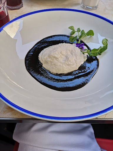 Tiene el restaurante que esta en un primer piso y la terraza junto a la fuente, todo parece agradable, mucha gente comiendo ... hacia frió así que me decidí por un caldo tlalpeño... te ponen todo bonito, una tablita "azul y oro" servido en una cazuelita muy conocida. al menos puedo decir que estaba bien caliente. Su sabor sin embargo era insignificativo, nada del otro mundo y nada que en cualquier fondita no puedas encontrar.