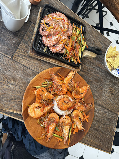 Read moreThe food here was DELICIOUS. We originally tried going to a different seafood place nearby, but the line was crazy. We chose this restaurant randomly and were not disappointed. The staff was extremely friendly and helped navigate us to the correct restaurant and they were patient when we looked at the menu. The food was amazing. We ordered the grilled octopus and bacanora shrimp. The shrimp were cooked in front of us and the octopus was on a sizzling plate. The vegetables and rice that came with the dishes were seasoned well too. Everything was great! I would love to come back the next time...