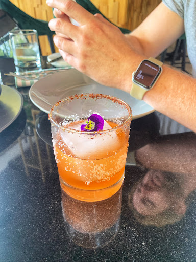 The restaurant is on the rooftop of Casa Prim hotel. The rooftop is a bit lower than I anticipated. It’s on the third floor which is the highest floor of the building. The decor and ambiance of the restaurant are both really nice. The staff is very friendly and attentive. They seem to take COVID precautions pretty well. I was looking to a place to have lunch and work from a rooftop. The music wasn’t too loud. I seated in the outdoors area and it has a nice clear roof. It rained a bit while I was there but I didn’t get wet!