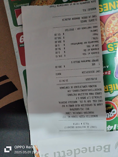 Read morePésimo servicio, el chico que atiende Brandon Valencia, hablando por teléfono en ves de atender. Pedí una pizza grande de especialidades con orilla de queso, por lo que pague 369, Si tú por alguna razón no revisas sus pantallas, el no te ofrece las promociones, me acerque a preguntar ya que había una promoción de combo pizza grande de especialidades obviamente mucho más barata pero pues obviamente yo ya había pagado y el comento que no es su obligación decirme de las promociones y que para eso están las pantallas, que para la próxima me fije en las pantallas en tono grosero. ...