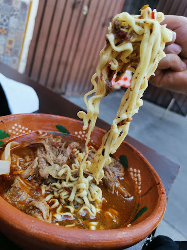 No se si fue porque han tenido mucha gente, pero las fotos del lugar no concuerdan con lo que te sirven, ya que por ejemplo, las birriaramen no te la sirven en platos, te lo dan en unicel y cubiertos de plástico (que vaya, para comer en un local pues siento que es diferente para llevar). No tienen suficientes recipientes de salsas y así para todas sus mesas por lo que te la tienes que preparar para después pasársela a otra mesa. El birriaramen ahí no lo recomiendo, la verdad es que es una simple maruchan que le avientan poquita birria (si, muy poca), los demás productos están decentes. Me genero conflicto ahorita porque tenían promoción 2 birriaramen por $75 pero al momento de pagar me dijeron que era $150 a lo cual comenté de la promoción pero me dijeron que eso se tenía que decir “con anticipación” cosa que en sus publicaciones nunca dice, me respetaron por esta ocasión la promoción pero dicen que la promoción le ponen menor cantidad (lo cual se me hace una burla ya que es muy poca la cantidad que tiene como para que en sus promociones atraigan a la gente a base de engaños). El personal si me respeto la promoción pero se noto que se enojo la cajera, no se si sea dueña pero pues uno nunca hizo un comentario grosero, enojado o algo por el estilo, simplemente hice mención que porque no me habían hecho válida...