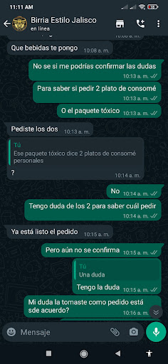 Read moreMuy mal la atención por what's app al tomar el pedido, me mandaron lo que quisieron, tenía dudas y me lo tomaron como pedido, al final recibí algo que no quise y todo por querer mandarlo rápido. En what's app notifique mi inconformidad y no tomaron atención en esto. El repartidor se completó de buena manera y buena atención pidió disculpas pero por la mala atención al tomar pedidos por what's app salen...