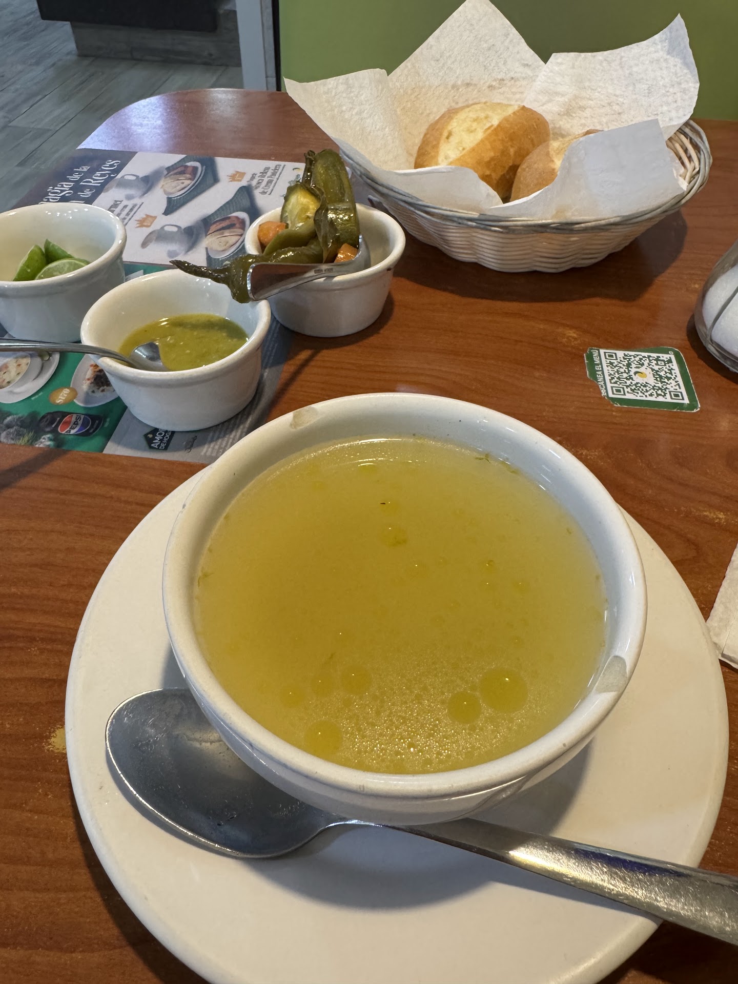 Hacía un año que no veníamos a esta sucursal, tuvieron muchos detalles en nuestro servicio. Sirvieron en un vaso sucio el café con leche, se lo regresamos. Pidió mi mamá una ensalada carnaval con aderezo italiano, le trajeron la ensalada y le dijeron que no había el aderezo que quería, pidió aceite de oliva y tampoco tienen aceite de oliva. Lo lógico sería avisar desde antes y ofrecer la ensalada o si querían cambiar de platillo. Pedí un consomé especial, el arroz estaba duro, le faltaba cocimiento. Nos trajeron rajas, se quisieron comer la papa que venía y estaba cruda. Pedí una pechuga rellena de queso en salsa de cilantro para llevar, sin arroz y frijoles, pero con verduras al vapor en su lugar y resulta que eso ya se cobra como extra, cuando en todas las sucursales hacen el cambio sin problema. Al final nos trajeron la cuenta, la revisé, mi mamá en la ensalada pidió pechuga empanizada como extra, cobraron la pechuga y un huevo, cuando solo debía ser el costo de pechuga, pero lo marcó así el mesero “porque así le dijo su jefa”. Una lástima, era un lugar al que siempre había fila para ingresar, prefirieron bajar la calidad del servicio y el cuidado de sus alimentos. Ahora cobran lo que quieren, porque así les dice su jefa, recomiendo revisar...