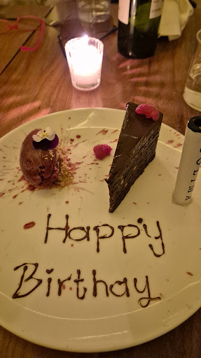 The evening ended on a much higher note with an affogato—a perfect, spectacular finish to the meal. To my surprise, the restaurant also brought out a birthday treat: a piece of chocolate torte with raspberry sorbet. It was a sweet gesture, and a much-appreciated one at that.
