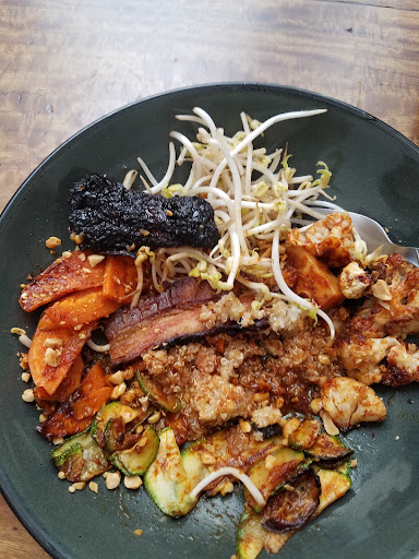 My pork belly (Buddha Bowl), seen in attached photo, was either charcoaled into oblivion or was so dry and shriveled it was not recognizable. I did eat some as I was extremely hungry, but the bowl in the photo is what I left. Who on earth would give patrons food in such a condition?