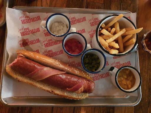 Read moreBurger bar es un lugar ideal para ir a comer con tus amigos, familia o pareja, El Ambiente es agradable, tiene una decoración bastante retro que a mi parecer es de buen gusto, el servicio por parte de los meseros es buena, tienen una variedad de hamburguesas y hot dogs, algunas extravagantes otras tradicionales pero con un sabor excelente, a mi parecer me quedo más con las combinaciones tradicionales, sin embargo la gran variedad hace que sea difícil de decidir por una, de lado de los hot dogs pasa lo mismo, los aderezos son deliciosos, te recomiendo que pidas una entrada como dedos de queso o bownlees ya que la espera de los alimentos suele ser de alrededor de 25 minutos o más dependiendo si tiene mucha demanda, para acompañar puedes tomar una cerveza un coctel o un batido, tienen una amplia gama de sabores, pero nada mejor que una cerveza de barril bien fría :), si bien lo único que a mi parecer no es totalmente bueno son las papas en general con las cuales acompañas los diversos alimentos ya que son extremadamente grasas y en ocasiones me. Han tocado un poco quemdas, lo dejaré a...