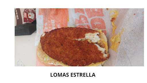 Pedi una king de pollo, y llego negra, la cual solicite el cambio porque estaba completamente chiclosa por dentro y quemada por fuera, y la que me cambiaron estaba igual, me acerque con la encargada de turno y me dijo " es el adobo , asi salen todas" lo cual en mi experencia en otras sucursales no es asi, es mas jamas sale de ese color ni textura de la carne, lo cual es muy sospechoso ya que puede que su aceite este en mal estado o la carne esta en mal estado y la frien por mas tiempo para que no se note No me quede con la duda y fui a comer a la sucursal que esta cerca de atlalilco y el resultado fue diferente , ni cerca del "adobo" que mencionaba la encargada de lomas estrella, el color y la textura es completamente diferente, por dentro el pollo esta bien, nada chicloso y de hecho se deshace al tacto, en cambio de la otra que tenias que despellejarla