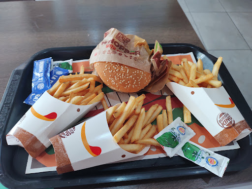 Llegamos de la calle y realizamos nuestro pedido, el cuál contenía está fabulosa hamburguesa, en lo que preparan el servicio fui al baño a lavarme las manos y OH! sorpresa, solo existe 1 baño de damas y 1 baño de caballeros pero solo lo puede ocupar una persona, el pedido salió y la persona del baño aún no, fui a preguntar si estaban disponibles los sanitarios o si existía algún otro lugar para lavarme las manos, pues no, ninguno más, la respuesta del encargado o empleado del lugar fue, está ocupado (obvio) y no hay más, debe de esperar. 15 min después el baño seguía ocupado, 20 min después sale un empleado de BK, terminando de arreglarse. Desde mi pto de vista esto no debe de ser, ellos deben de tener un lugar en donde cambiarse y otro baño para ellos, compartido o no pero solo exclusivo de ellos. Y a los visitantes no condicionarnos a 1 baño o por lo menos que pongan afuera de cada baño un lavamos. Ojalá les sirva...