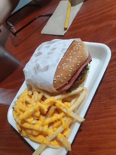La verdad tenía bajas espectativas de este lugar, la zona no da para buenas opciones (seamos sinceros). Pero… las hamburguesas son 3B (buenas, bonitas y baratas), en lo personal tienen buen sabor y buen tamaño (en especial la bruta, esta enorme y cuesta $110). Todas las hamburguesas vienen con papas, los Hot Dog, no. El tamaño de las papas a la francesa es acorde a los $50 que uno paga. No aceptan tarjeta (ya es 2023 y deberían hacerlo) pero aceptan transferencias y luego enviar el comprobante (es molesto perder tanto tiempo, una terminal es más rápida). El chico mesero es muy chistoso y rápido.