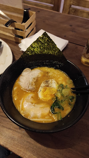 Read moreUna curiosidad de lugar, es muy pequeño y tiene pocas mesas grandes por lo qué recomendaria solo ir en pareja, la iluminación es terrible y hay cosas de alacena en el suelo, no es muy cómodo el mobiliario. La comida es rica pero no para aguantar los 50 min que nos hicimos esperando entrar, afortunadamente la comida no se tardo mas de 20 min en estar servida y las bebidas de frutas son increíbles, deliciosas y refrescantes. El agua mineral no es de botella individual están sirviendo de topochicos grandes a vaso, curioso pero por lo menos es topochico. Pedimos yakimeshi, muy sabroso pero pobre en porción, es más para acompañar qué como platillo en si mismo, yakisoba, rico, bien cocido y sazonado, lleva Jengibre en salmuera, repollo y creo que aceite de ajonjoli, pero literal tenia...6 camarones pequeños? La porción de pasta es buena. El ramen miso estaba sabroso especialmente el huevito estaba en su punto pero no así el puerco ya que estaba duro. El chico del bar es muy bueno y amable. Nos dieron una tarjeta de 10% de descuento para próxima visita Con caducidad de 1 mes. El baño es mixto y de buen tamaño pero las mesas qué están saliendo corren el riesgo de percibir ciertos olores desagradables. Las gyosas fueron lo que más se tardo son gorditas y en buena cantidad (6) están bien de sabor. Creo que tuvimos suerte con el tiempo que se tardo la comida porque vimos una mesa qué ya estaba sentada desde que llegamos a hacer fila qué le sirvieron tiempo después de que nos sentaron. Francamente la casa es vieja y fea, pero se ve que la cocina tiene equipos modernos y una mejor area qué la...