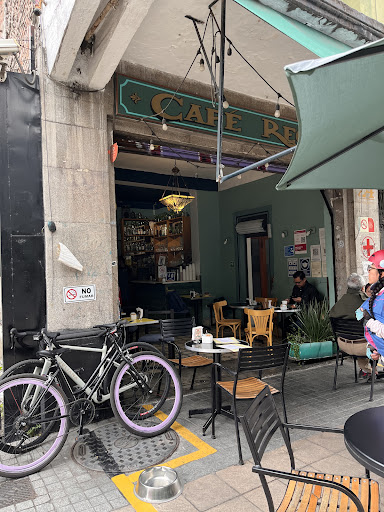 Agregado unos días después de leer la respuesta que da el negocio: No es una ley el no tener bicis junto a la mesa (Dicen que los multaran por ser paso o arriba de coladeras? (No era el caso, mejor decir que no les agradan que las bicis estén en su perimetro de mesas) Caminamos unos pasos y en el Cafe Jekemir colocamos nuestras bicis, sin ningún problema. Se nota que no son ciclistas justificando que hay un aparcadero de bicis enfrente (la mayoría de los ciclistas sabemos que aún con candado la calle de Regina es foco rojo para el robo de bicis) por tanto no es opción. Platicando con la comunidad ciclista que topamos nos cuentan que ya les han negado dejar sus bicis en ese establecimiento, por tanto están en nuestra lista de lugares para NO ir con bicis. Si quieren conocer lugares (Cafés amigables con ciclistas en CDMX) busquen la lista de lugares bikefriendly en IG @resistepedal y @chulas.cc) Esperamos que los empleados sean tratados con sueldos justos, sin robo de propinas ni sanciones que afecten sus propinas y que se les paguen horas extras. Pero, ¡Qué mala excusa poner a los empleados de justificación para negar al comensal tener su bici junto a una! Una sociedad amigable con las bicis es reflejo de una cultura de respeto. La bici es el futuro ¡Actualicense Café Régina! Están perdiendo a los ciclistas. Abrazo amigos ciclistas y...