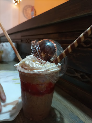 Fuí por 1ra vez y pedí un latte pero en realidad era capuchino, en mi humilde conocimiento: el capuchino va espumeado y el latte va cremado, además el latte no sólo es más caro por el porcentaje de leche, sino que predomina más el sabor del café. Hice la observación y minutos después tenía un latte cremado en mi mesa; gesto que agradecí bastante! Pero aún así la carga del café era muy liviana, tal vez esté mal calibrada la cafetera. Pedí una crepa de Nutella con queso Philadelphia pero no sabía que le ponían encima azúcar glass (espero no me dé un coma diabético)😅 La malteada de chocolate con muchísima azúcar, poca leche y 50% agua de hielo. La atención es buena👍, precios accesibles, el lugar nada...