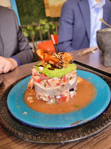 In Mexico City for business, we asked our sponsor to take us to the best lunch place for locals to really enjoy the local food. He took us here and it was my favorite meal of the trip. While we tried too many appetizers to name (my favorite was octopus showed below), our main dish was two Ceviche "towers". Let me say that my picture does not do this dish justice. They are HUGE. We had 8 people and we could barely finish both of them. Covered with giant prawns and plenty of squid and what I believe was tilapia. The sauces provided really add quite a kick as well. The place is clean, the staff is friendly and the music is...