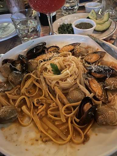 Read moreFuimos en sábado a comer alrededor de las 4 pm. Bonito lugar pero siempre está lleno, no hay reservaciones y la lista de espera es de 50 minutos. La entrada de cortesía (marlin) está muy rica al igual que el pan brioche que ofrecen. En general, son platos grandes para compartir. Mi esposo pidió una tostada de pulpo y alcanzaba perfectamente para dos tostadas bien servidas, mi hijo pidió unos tacos de arrachera enigualmente venian de buen tamaño como para compartir si es que lo vas a comer de entrada y yo pedí un taco de jaiba, ese si fue de tamaño normal. De segundo tiempo, mi esposo pidió chicharron mixto (estaba rico pero hubiera estado mejor si las porciones estuvieran mas pequeñas listas para hacerse un taco, había que usar el cuchillo).; un pulpo zarandeado, una pasta de mejillones y almejas la cual decia en el menu que era de citricos con vino blanco, estaba rica pero no mencionan que lleva salsa de tomate con chile. Le pregunté al mesero y me dijo que así era, la verdad lo dudo, siento que ousieron los mariscos en una pasta de otra comanda; y por último mi hijo pidió un pescado del día que era dorado el vual se habia acabado y nosnofrecieron robalo y finalmente tuvieron que darnos lobino porque igual se habia acabado, el pero en este platillo fue que el filete traia ESPINAS! Obviamente lo regresamos y pedimos que le trajeran uno bien limpio pero tardó mucho. Los postres dejan mucho que desear, no me parecieron ricos. Los plastillos son caros y están buenos (he probado mejores) pero por el tamaño son platos para compartir y de esta manera puede ser que ya no sea tan excesiva la cuenta. Par ser un lugar de pescados y mariscos siento que les falta un poco mas de variedad de productos. No habia calamares. Atención de personal bien a secas. Se me hizo un poco apretado el lugar porque hay tantas cosas en la mesa que hay que estar...