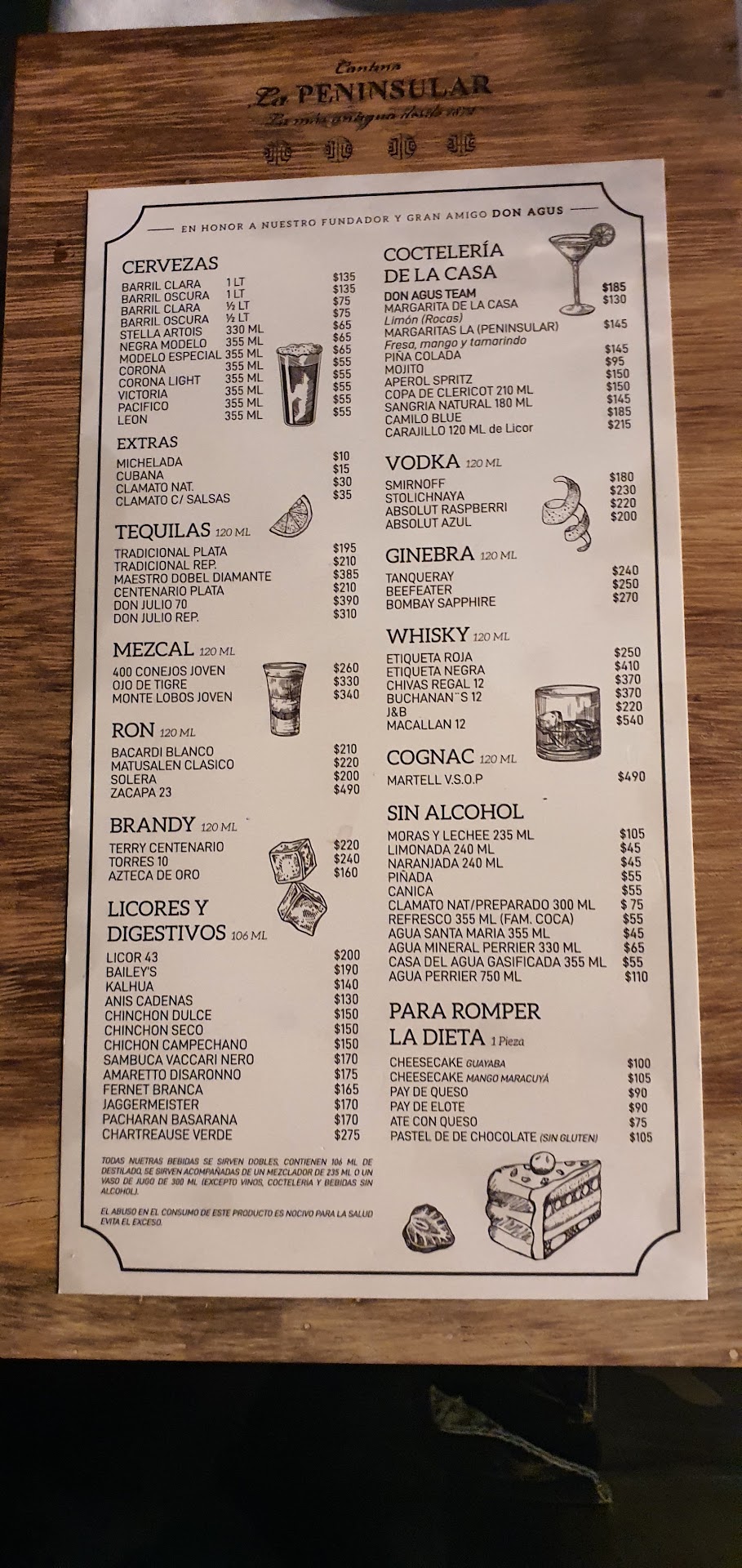Ñeeeeeé. De antiguo solo la palabra en el letrero. Un distintivo que tienen las cantinas de abolengo y antiguas son las barras y su acomodo. Con su canal orinal al pie. Su barra se parece a la que hizo mi cuñado en su casa sin saber de carpintería: toda malhecha. Nada que ver con la barra de una cantina de quesque más de 100 años. Conté 24 botellas en la dizque barra. ¿Es en serio? Una cosa para mí gusto muy, muy, muy molesta es que no tengan lo que ofrecen en las cartas. Y por lo que veo, en los comentarios es muy frecuente. No hay cerveza de barril y si está en la carta y si hay cerveza Indio que no esta en la carta.Lo que habla más de una de una fonda que de "la cantina más antigua de México" Yo pedí un ron que no aparece en la carta...¿De qué se trata pues? De la carta solo tenían arrachera y enchiladas. ¿Cómo para que entonces te dan un menú? Terminamos preguntando que es lo que si tenían. Pedimos enchiladas. Las rojas que parecían verdes, buenas a secas, las de mole sin sabor. Un mole muy malo. Teniendo a la vuelta a uno de los mejores proveedores de moles del centro. ¿Cómo es eso? Una cosa que me pareció indigno de "la cantina más antigua de México" es que no nos mencionarán "la botana" sino hasta que preguntamos. Para quienes no sepan, "la botana" es la comida que viene incluida con los tragos. Déjenme decirles que en las verdaderas cantinas de abolengo, "la botana" puede llegar a ser de los mejores manjares que puedes comer. Nada que ver aquí. Nada que ver. Nosotros pedimos a la carta de la cual como ya dije solo tenían arrachera y enchiladas. Nos comentó quien nos atendió que eso es "porque es lunes" que por eso no tenían varía cosas. "Apenas nos están surtiendo" Pues si no pueden dar un buen servicio los lunes, entonces no abran los lunes. Dan pena. En general se puede ver qué no tienen ninguna propuesta gastronómica. Una fonda a veces ofrece mejores platillos. Para rematar, mi esposa pidió el "flan de la abuela" y otra vez: "no tengo" ¡Ah qué la...! Lo que más rescato es la muy, muy amable atención de Mary y Janeth. Pero de verdad, no lo recomiendo. No lo recomiendo, no lo recomiendo. Es una fonda donde te puedes echar unos tragos y ya. El eslogan les queda muy muy, muy, muy grande. Y como dije ya: Dan pena. La música: de YouTube con anuncios. ¿La cantina más antigua de México no tiene para su negocio una cuenta premium? ¿Es en serio? Además quien elige la musica la elige según su gusto. No para los clientes de "la cantina más antigua de México". Primera y última vez que...