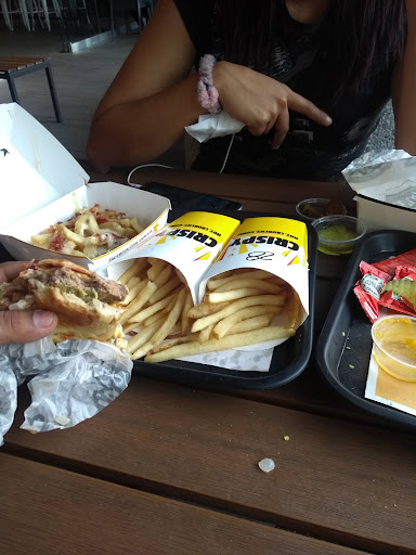 El servicio está limitado a las seis mesas que están sobre el pasillo y para llevar. Fui un sábado y el tiempo aproximado fue de 30 minutos. Mi pedido era simple, dos paquetes #8, hamburguesas con guacamole, sin embargo al darme cuenta las hamburguesas eran originales. Se equivocaron de pedido y al mencionarle esto al chico de la entrada muy amablemente se ofreció a cambiar las hamburguesas pero el encargado de ahí se rehusó y muy groseramente me dijo que si quería el cambio tenía que cobrarme $100 por cada hamburguesa, me rehúse y solo me dió unos vacitos con el guacamole cobrandome $20. En fin, los encargados deben aprender lo que es servicio al cliente y corregir sus errores sin cobros de más. Mal servicio por parte de gerentes o supervisor, porque ni si quiera se presentó, pero obviamente era...