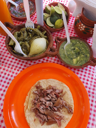 Read moreExcelente opción para disfrutar de unas "carnitas". Buen sabor, los nopales muy sabrosos, su salsa verde también muy sabrosa. No sirven la salsa tradicional para las carnitas, pero esto no demerita disfrutarlas con su salsa verde. Los tacos de chamorro, costilla y "cuerito", muy sabrosos. El café de olla, muy sabroso. Está en su punto. Con piloncillo y canela. Puedes acompañarlo con un delicioso biscocho. De alguna manera, tiene mesas en el interior del negocio y en el jardín o parque que se encuentra "afuerita". Estar en el "parquesito" brinda una muy grata sensación. Hay que darse la oportunidad para vivirlo. Con la atención que te dan, se siente uno...