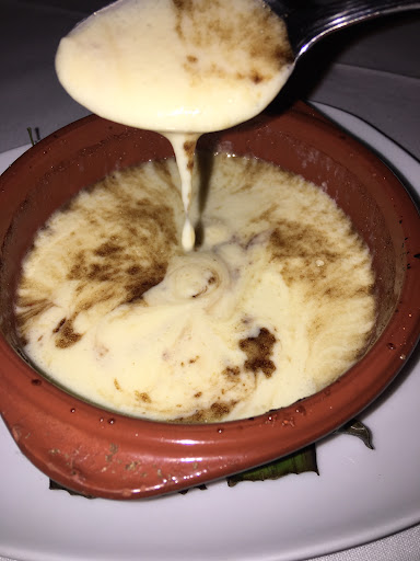 Oh my goodness! Here it goes. My waiter was a sweet man who did a fine 8/10 waiterly job. I found little fault in his attentions, but beyond this any redeeming qualities of this restaurant came to a screeching halt. Well… the artisanal bread, grassy phenolic olive oil and balsamic vinegar were actually solid and a promising start. I had high hopes that were not dashed by the well-balanced house red that arrived on the heels of the yeasty crusty goodness with an air of austerity lightened with just a touch of fruit-forward character. Things were looking good. Soon, my “New York” steak arrived with it’s side of spaghetti and veggie compliments. This is where the train seemed to leave it’s rails and plunge headlong into an abysmal canyon, the depth of which may prove difficult to convey. To begin with the lesser evils, the veggies were more like really bad dancers than inoperable tumors. A roasted spring onion stood alone and proud above some confused green beans who rested uncomfortably atop a few slices of pineapple. They were not smiling. Captain Creative here found that mixing the beans and piña brought them to a nearly sub-passable level, but there was no question that the onion wanted no part in these shenanigans. To the right, a tiny bowl of bland, molto al dente spaghetti begged me for some olive oil, salt, and pepper. I was happy to acquiesce, crunch crunch. I was going to make it! Finally, my eyes fell upon the beef. I know it was beef. I’ve had it in many forms, but this was no New York cut. It was definitely new… something. It was far wider than any New York strip I’ve ever seen. It was 1/2 an inch thick, and the fat cap was so dense with connective tissue that I couldn’t manage to grind down a single bite. I’m quite certain that this imposter originated somewhere far far away from the top of the short loin. After heavily medicating the unseasoned beast with a dose of salt and pepper, and sadly cutting away the tendon-like fat, I was rewarded with something that teased me with a suggestion of cowy flavor, uninspiring but palatable. In all of this confusion, I had forgotten about my proud spring onion, which I now proceeded to slice up and apply to some oil and vinegar soaked bread slices. A moment of relief! I smiled when I remembered that I could still wash all of this down with a pretty fair red. Life has it’s ups and downs, and I knew that with a dose of my favorite dessert, creme brulee, I was bound to finish up on a high note. Well… my finishing moments arrived, a bit less like some soaring Heifetz finale than the dying screams of a small tortured... never mind. I wasn’t sure anyone on earth would believe what I faced, so I had to document it with my trusty 6s+. It was a soup, and a very thin soup indeed. There actually was no crust or custard in the accepted sense of the words. Runny from top to bottom. The cream for my coffee was a dairy substitute. Bear in mind that this was at a high-end restaurant in one of the gastronomical capitals of planet earth. I called my waiter over, thanked him for his great service, took good care of him, and left with my tail between my legs. Earlier that day, I had enjoyed one of the best dining experiences in memory. Entropy? Negentropy? Not sure what was going on here, but I suspect the message is more Pema Chodron than...