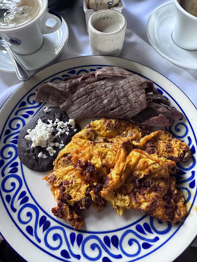 The food at Casa Pestalozzi is excellent—you can tell it's made with top-quality ingredients, and the taste is fantastic. I personally recommend the Chilaquiles Verdes with skirt steak; the flavors are rich, authentic, and absolutely satisfying.