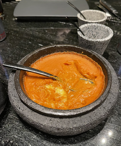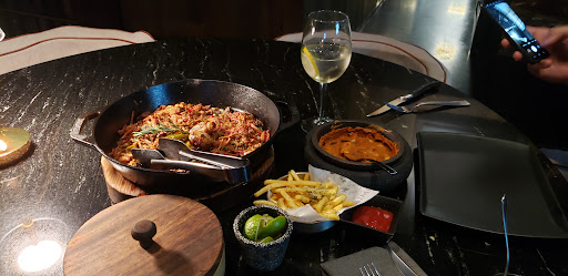 Read moreIt's located just past the front doors, to the right, in the Hilton Mexico City Reforma Hotel. The service was great, everyone was super friendly. The atmosphere was amazing, suitable for a night out with friends or romantic dinner for two. The only reason I gave them a 4 star review was because we did eat dinner there several times and the drinks were not bad but also not great, and some of the dishes I could have done without. First I will tell you about the one I would write home about and would definitely say my mouth waters when I think about it. The brisket tacos were amazing. They brought it to the table, set it on fire, and shredded it (I think the fire was more for the show, but it was a nice experience). It came with two sauces one mild the other pretty spicy, some lime, and very important freshly made tortillas. It was enough to feed 2 people. It was so good that after trying several other dishes on other nights we definitely had to have it again before coming back home from vacation. Other meals we had were wellington steak injected with cheese (we had high hopes for this one, but both of us were very disappointed with it), truffle fries (they were ok but not worth it), street tacos (they were good but overpriced for street tacos), calamari (it was ok, but I can do without, I do have to admit this one place in San Diego ruined calamari for me because it was amazing), cheesecake with berries (this one was very good but it is dense and pretty filling, decent size piece good for sharing), ice cream (I think they only had 2 flavors, it was good but not amazing). They give you complimentary chips and fried beans with cheese on top, the chips taste fresh every time and the beans are pretty delicious when they bring them out hot and fresh, one time they brought them out a bit cold and we didn't love them. Also, after your meal they bring you some complimentary churros (they're ok). I would definitely go back for the brisket tacos, and recommend to anyone I know is going to...