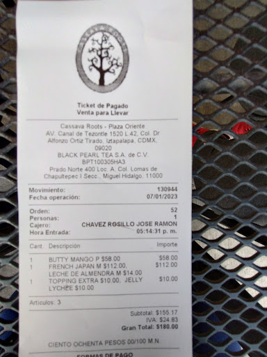 Read moreQue tal buenas tardes. En esta ocasión estamos en CASSAVA ROOTS plaza oriente. Si me preguntan si lo recomiendo, lamentablemente NO , por 2 situaciones, considero que cuando uno va a algún establecimiento de comida la prioridad es uno el sabor y 2 la atención del personal. En servicio el joven que nos atendió muy mal, en el aspecto que fue muy déspota . De mala manera nos explico los sabores que no tenía. Muy pésimo servicio por parte de el. El otro joven sin problema nos dió las bebidas de forma amable. Pero oooh sorpresa no tenía nada de sabor. Les dejo el ticket para que vean lo que se gasto. Les sugiero acudir a otros CASSAVA ROOTS quizás simplemente fue una mala experiencia.