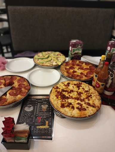 La comida : la peor pizza del mundo mil veces little caesars. Servicio: hoy 18 de abril asistí con mi familia a las 4 pm y la chica que está en la puerta te recibe con su jeta y no te hace caso a pesar que dijimos que éramos 8 personas te deja a tu suerte donde quieras aplastarte después 10 minutos te dan un menú luego 15 minutos más para que tomen la orden y tu dirás estaba a reventar pobres chicas no se dan abasto pero nooo! Cotorreando dando vueltas paradas en la barra, ya llegan a tomarnos la orden y a pesar que ya sabíamos que íbamos a tomar nos dice que después regresa a tomarnos la orden de bebidas y tarda más de 20 minutos en tomarnos la orden de bebidas, salen nuestras pizzas ya llevamos 3 rebanadas cada quien y las bebidas ni sus luces lo único que sí nos trajeron al momento fueron los Boings de los pequeños pero nosotros a nuestra suerte mi esposa se tuvo que parar a la barra por qué no teníamos que tomar y si las pizzas estás culerisimas imaginen sin algo con que pasartelas y reitero el lugar estaba muy pero muy vacío la chica que nos atendía solo tenía 3 mesas y las otras chicas cotorreando y dando vueltas o platicando y a pesar que levantes la mano ni te pelan. Ambiente: pues chingón ya que las meseras en vez de hacer su labor están cante y cante sus rolas de gloria Trevi, la gata bajo la lluvia etc..... Que pasen en sus pantallas el único haciendo su labor el señor que cuida los autos muy atento y amable el si se ganó su propina por qué lamentablemente nuestra mesera no se ganó ninguna gratificación ya que su servicio nefasto la verdad debut y despedida la peor experiencia en...