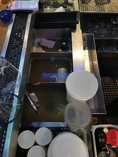 Bad, My girlfriend and I visited tonight, we was greeted with a smile, hostess sat us at a table, waiter came to take our order, we told the food server what we wanted and said we would like and have it to go, we where instantly asked to leave the table and told to go the bar place your order, my reply what you do not work for tips? (note time of our visit only 4 tables had customers) , OK no problem, so here we are sitting at the bar we placed our order, after sitting a while at the bar I said myself a drink sounds good, I stand up on foot stand on my chair to get the bartenders attention and as seen in the photo this is what seen, what a awful surprise, wow, then I seen the bartender wash my glass in this water, didn't dry it off, my glass had many unknown things floating in my drink, I refused to drink it and asked to have removed from my check, wow I seen the woman wash more than 20 glasses in this water! I asked to speak to a Manger about issue and he didn't seem to care guess is...