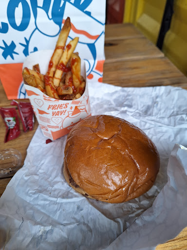 Read moreMe encantaron. Son como Carls Jr. (que ya son muy ricas) pero versión premium. El pan es muy muy suave y rico y las papas están increíbles; doraditas, crujientes y suaves al mismo tiempo. No tengo idea de cómo describir la carne y el queso pero también están deliciosos. Lo que más me gustó fue que los aderezos venían totalmente aparte para que le pongas a tu gusto. La clásica viene con sobrecitos de mostaza, mayonesa y catsup. Aparte un botecito individual de pepinillos, chiles secos (que están deliciosos y tienen un picor muy ligero) y aderezo de la casa (no lo probé porque no suelen gustarme así las hamburguesas). El precio parece algo 'caro' ($170 la normal c/papas) para una hamburguesa pero considerando la calidad me parece que está muy bien. ¿Quieres comida de calidad? Paga cab*ón, paga, aprende a pagar. Lo único que 'no me gustó' (y muy entre comillas) es que, para mi gusto, dos sobrecitos de catsup se quedan cortos para una hamburguesa y una orden de papas. Pero en fin, las recomiendo...