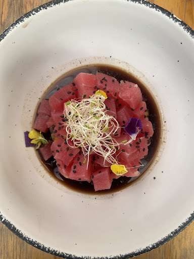 Read more¡Decepcionante! Tras leer varias reseñas del lugar me parecía una buena opción para ir a comer un viernes saliendo del trabajo. Casi todo del lugar me quedó corto. Cerveza artesanal a 80 pesos el 1/3. Estaba tibia, tuve que pedir hielos para enfriarla El mesero muy amable pero la mitad del tiempo está desaparecido. Los demás te atienden de muy mala gana. La música: Rammstein a todo volumen a las 3 de la tarde? Vengo a comer y pasar un rato agradable en la terraza, no a un concierto de metal. Pedí que pusieron algo más tranquilo y lo cambiaron enseguida. La comida no está mal, solo pedimos unas papas y un tártara de atún. El menú dice que el tártara se sirve con aguacate, me lo sirvieron con cubitos de melón, ni pizca de aguacate. Pensaba en pedir dos platos fuertes, pero para aquel entonces ya se me habían esfumado las ganas de pedir más cosas.