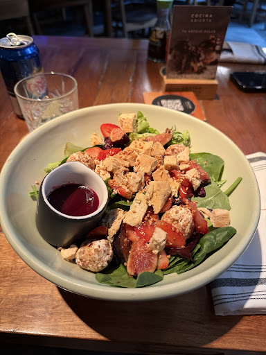 I ordered a salad priced at over $200 pesos, which felt steep. The salad took a while to arrive, and while the presentation was excellent and was a solid option, it didn’t feel worth the price. By the end of my meal, I had spent close to $320 pesos (excluding tip) for a salad and a sparkling water, which seemed excessive.