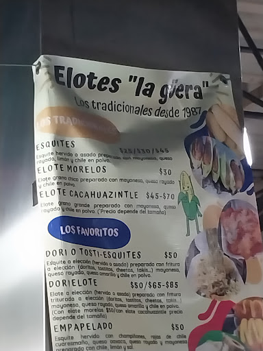 Tienen elotes Asados y también hervidos. Los esquites pueden ser sencillos o empapelados (con queso oaxaca, champiñones, etc)