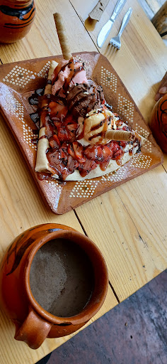 Read moreEl lugar es pintoresco, supieron aprovechar un reducido espacio en una bella terraza rústica. Quienes atienden son sumamente amables, incluso aunque seamos indecisas. Además atienden de manera eficiente. El chocolate semiamargo es una bebida caliente muy rica. Por nuestra indecisión pedimos una crepa de banana split con fresas en lugar de platano que estaba sumamente rica. Además de tener una presentación muy bella, le pusieron un montón de fresa. El precio es bastante accesible y está muy...