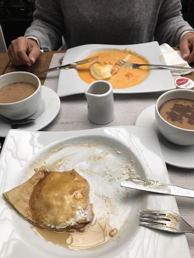 Desde que abrieron a la fecha, el servicio ha mejorado considerablemente; ya no es un caos todo el tiempo la sucursal y han trabajado mucho para bajar el tiempo de espera tanto para ingresar al restaurante, como al momento de entregar los platillos. La comida es deli, no hay ni un sólo plato de su variado y extenso menú que no te vaya a satisfacer y deleitar tus sentidos; hay para todos los gustos, las malteadas son increíbles, los postres son geniales, las crepas saladas no tienen comparación y las bebidas son indescriptibles y existe toda una carta dedicada a los helados, muchísimas creaciones para hacerte feliz. Entre mis favoritos están: Waffle de nutella y fresa, miniwaffles de chocolate, los miniwaffles California son una verdadera delicia, la crepa cleopatra es para chuparse los dedos y la chocolate fondeou simplemente no tiene mad... Para el desayuno la crepa formage es algo completamente distinto y delicioso a lo que te pueden servir en cualquier otro lugar, la parisiene es una opción que los amantes de la salsa de queso disfrutarán demasiado, los huevos rosarito son geniales si buscas una opción de huevos pochados y con un toque de picante. Para la comida la crepa de filete árabe es una fiesta de sabores en tu paladar, la ensalada marroquí es un deleite con la mezcla de camarones, cous-cous y chutney de mango, las ensaladas que manejan como entradas, por ser más pequeñas, también son un manjar, la ensalada C&W tiene queso de cabra que combinado con el aderezo... Yummy! La roquefort con las peras glaseadas también sabe increíble y la variedad de panne cook es riquísima. Son panes artesanales (campesino) con distintos rellenos, ternera, champiñones, camarones. En este lugar las opciones son demasiadas, tendrías que visitarlo unas 15 veces o más para cobrar cada uno de sus exquisitos platos. En cuanto a las bebidas... En verdad es increíble su variedad de cafés, jugos y smoothies. El café apassionato es mi preferido, los granitos de café cubiertos de chocolate que lo acompañan pueden hacerte feliz en un instante! Hay chocolate con bombones, café frío frapeado, el Moka-Moka es especialmente deli! El smothie alegría en verdad te hace alegre, el vino tinto de verano y el vino caliente son perfectos acompañantes para cualquier plato salado a la hora de la comida y por último pero no menos importante están las pitas, que son pan árabe preparadas de distintas maneras. La champiñón pocket está a otro nivel! Es un lugar para ir a disfrutar una comida completa. Mi única recomendación es que vayan con tiempo y paciencia porque a veces el servicio es lentísimo aunque a la hora de probar la comida...