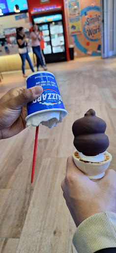 Después, pedí un Blizzard mediano de plátano y, sin mentir, ¡tenía sólo 2 pedazos pequeños de plátano en todo el vaso! Fui a pedirle amablemente al chico que atendió que si me podía poner un poco de más plátano porque no tenía mucho y me mintió descaradamente, y lo cito "debe estar hasta abajo porque le puse medio plátano". Pues me comí todo el vaso esperando encontrar ese medio plátano que me dijo y no lo tenía. En un vaso mediano, sólo dos pedazos de plátano muy pequeños. Y todavía me miente.