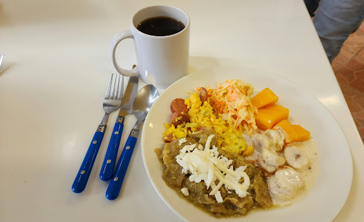 Read moreSolo faltaría más espacio para sentarte y creo baños. $60 pesos si dejas comida multa de $30 todo lo que probé muy bien sabor y fresco también me gustó que uno mismo pasa a dejar sus trastes plato plano, ondo, cucharas y vaso. Cómo está bueno y económico hay gente esperando y te ven con cara de...ya párate , ya termina. No saqué foto del reglamento pero te recomiendan 30 minutos para desayunar que en teoría está bien ya que es una cochera. Aguas frescas en máquina despachadora 3 , cereales, 2 contenedores con pan dulce y rebanadas de bolillo, mucha fruta y...