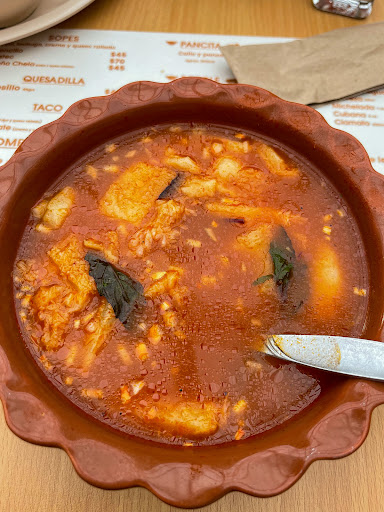 I recommend the pancita, a traditional Mexican soup, made with cow's stomach (tripe) in broth with a red chili pepper base. Use hominy, lime, onions, and oregano to season it. Make sure you get 1 or 2 tortillas (or a quesadilla or steak taco) to roll up to eat between slurps.
