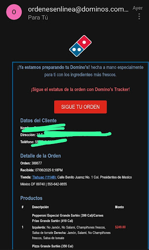 10 minutos más tarde el repartidor me marcó indicando que ya estaba afuera de mi domicilio, le pregunté el nombre de la gerente a lo que el respondió que era ERIKA GONZALEZ, supongo que es la señorita que atendió mi llamada, le mencioné que ya había cancelado mi orden y que disculpara la molestia.
