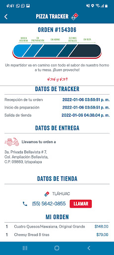 La señorita que atendió mi llamada me dijo que tenían problemas con la app y que el tiempo de entrega era de hasta una hora por el exceso de pedidos que tenían. Le hice mención que después de ese tiempo la pizza ya llegaría fría y que mejor cancelara mi orden.