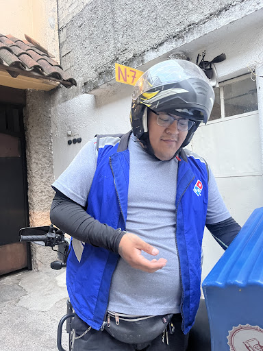 Read moreEn verdad que lo que pedí creo que había sido pizza, no un montón de masa cruda. El repartidor, excelente, rápido, aunque se que tal vez no dependa de quien prepara la pizza, le tuvimos que quitar la masa inferior porque estaba cruda. Queso... apenas y se veía, el tocino muy bien, salsa de tomate apenas y se notaba... ya no había querido pedir nuevamente de domino's, no se si en todas las sucursales pero hace tiempo me pasó lo mismo. Entiendo que así siempre han sido, pero en verdad, solo háganla más delgada para que esté bien cocida. No se si sea tan difícil. Pero en verdad lo único que consumimos fue la parte superior, la ligerísima, apenas visible y apenas identificable parte...