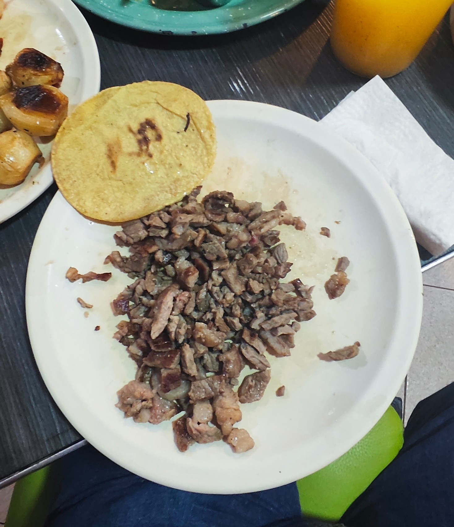 Siento, que los precios están elevados para la zona, pero bueno existía el beneficio de la duda, tal vez se compensaba con el tamaño de porción, pero oh sorpresa y cuando empezaron a llegar las órdenes (adjunto imagen) realmente eso es una orden de 6 tacos de costilla?.. La de hongos eran 3 tacos y era mucha más porción. Pero bueno lo aceptamos.