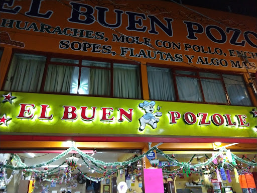 Read moreIbamos en plan de tacos (Copacabana) y sugerí ir a El Buen Pozole, que siempre que paso de noche, le veo con poca gente y muy iluminado. Quedé muuy contento. Entre 5 probamos: mole de olla, flautas ahogadas, pancita, caldo de pollo con pechuga y pozole. Las tostadas solitas (3), ricas. Los caldos, bien puestos, bien condimentados, no picantes, no salados, frescos en un viernes por la noche. Pedimos dos aguas frescas (de mandarina y sandía) y sí, naturales, frías y sin exceso de dulzor. Buen servicio por parte de una señorita que sabe bien su labor. * * * Los precios de c/platillo solicitado, a mi ver, estàn algo elevados ($130mxn c/u a fines de 2019), aunque las porciones son grandes y de buen sabor. No hay medias órdenes: o pides la orden completa o la compartes o pides "para llevar", o no comes. Como punto de comparación sobre los precios, una flauta ahogada en conocido lugar de la misma alcaldía BJ (El rey de las...), ronda los $22 pesitos, con todo; y aquí, están a $32.50 c/u, y a la de /a forziori/ te debes comer cuatro... ¡Ahh! y el menú infantil, exceptuando un platillo, disculpa mi memoria (los caballeros, no tenemos), es, básicamente, chatarra entre nuggets y papas fritas...