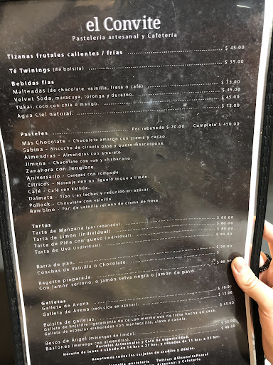 Read moreEl Convite ofrece una gran variedad de pasteles, tartas y repostería de las cuales me atrevo a decir que puedes elegir con la confianza de que te va a encantar, me encantó el pastel de almendras con amaretto, el tiramisú que ofrecen en frasco es perfecto para llevar y las tartas de higo o frutos rojos son exquisitas. Para "comer" hay un par de opciones, opté por la baguette "selva negra" que no decepciona pero considero que el pan podría mejorarse. El café es muy bueno, de gran sabor y toques aromáticos sutiles que engrandecen la experiencia, no dejes de probar el chai que es hecho en casa, lo recomiendo caliente. Es mi segunda visita a esta pasteleria-cafeteria artesanal pero seguro estoy que regresaré pronto para degustar...