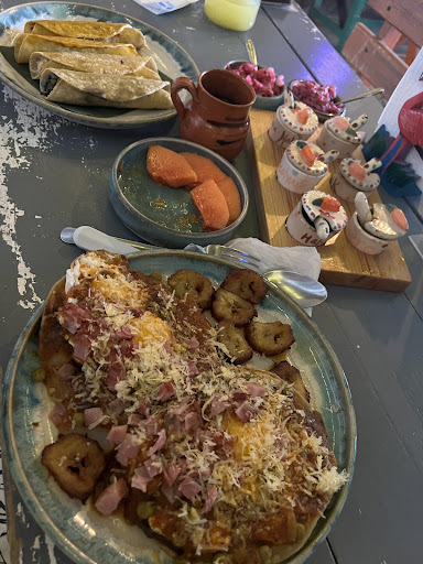 Is this the best restaurant in Mexico City? We came twice, and had very friendly service, and were pleasantly surprised by the dual-language menu. We got most things from the desayuno menu (where everything comes with cafe de olla or juice, and papaya): my favorite was the huevos motuleños. My partner got one of every taco from the standard menu, of which my favorite was the chicken and onion. We’ve also tried two types of agua fresca here, and both were the best we’ve had. This place is a sleeper hit! Every of the six hot sauces is incredible, and the flavors are balanced and complex. As an additional surprise, the bathrooms are an...