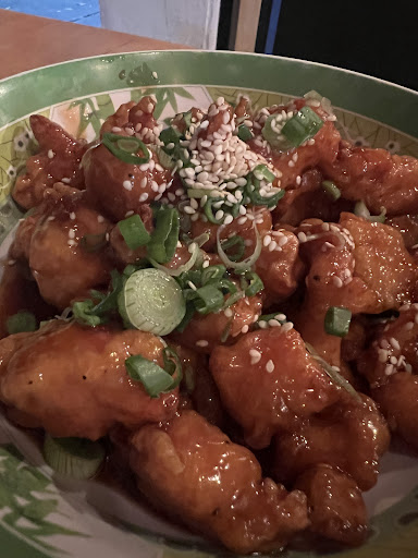 The staff and owner were very attentive, and our orders were taken promptly. We chose a vegetable fried rice to share, along with two orders of Hunan chicken and a side of veggie rolls. The fried rice came out quickly and, while fresh, was slightly too salty for my taste and cooled down faster than I would have liked.
