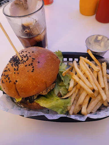 Read moreSuper rico 🤤 pedí una hamburguesa y una malteada porciones grandes y muy rico todo lo que ordene. El lugar es muy bonito,una onda como fuente de sodas de los 50s' es limpio y muy agradable, ambientan con música de los 80s' principalmente lo cual me encantó, no saben el alivio que se siente llegar a un lugar y no tener que escuchar corridos tumbados o reggaeton. Las meseras son buenas aunque deberían de mejorar su trato, nos había tocado ordenar con un chico que como que siempre está de malas y no es muy atento de hecho es grosero, pedí una pizza que tienen en su menú y muy grosero con cara de molesto me dijo que nada de pizzas había en ese momento ( hubiera sido cortes que me dijeron que no había pizzas desde que me recibió 😐) le pregunté entonces que qué cosa sí tenía del menú para no perder tiempo otra vez, y ya igual super grosero me dijo que todo menos pizza , pero gracias al universo se fue a otro sitio y ya nos atendió una chica con mejor actitud, aún así deberían mejorar a la hora de meserear, tarda en llegar la comida, pero en mi caso si estuvo rico lo que se ordeno, deben de verdad mejorar muchísimo su trato hacia los comensales porque si es un lugar agradable y rico pero la verdad yo ya no regresaría por su trato. Ups olvide mencionar el baño de mujeres, un solo wc en un cuarto donde hay un lavabo unos cuantos cuadros de nostalgia y el cesto de basura desbordado de papeles sucios ya también tirados en el piso 🤢...
